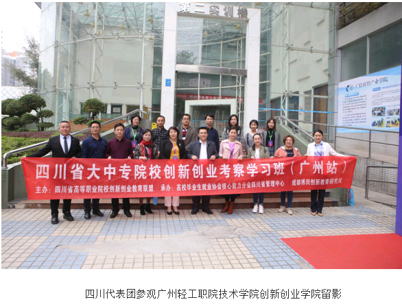 12月16日,教育部高校毕业生就业协会核心能力分会四川省管理中心刘丽华主任带领四川代表团与广东轻工职业技术学院创新创业学院吴建材院长及学院负责创新创业教师团队进行了以“新时代、新经济、新形势下的创新创业学习”主题座谈交流会,吴院长与四川老师们就学校创新创业模式及现状做了交流与沟通,同时带领四川考察团参观了广州轻工职院技术学院创新创业学院,让四川考察队伍认真了解了他们的作品、创意及日常运转,并就学校结合专业与校企合作形式开展创新创业的建设工作做了沟通与分享,并就当前学校的创业环境、政策支持、创业需求等问题与考察团进行了座谈交流。