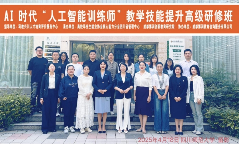 4月18日至20日,由科教兴川人才培育评价服务中心指导,高校毕业生就业协会核心能力分会四川省管理中心、成都博润创新教育研究院承办,成都博润教育咨询服务有限公司协办的第二届AI时代“人工智能训练师”教师技能提升高级研修班在四川师范大学完美收官。本次研修班旨在响应国家号召,紧跟时代步伐,提升博润在人工智能教育领域的专业水平,帮助教师掌握这些先进技术,并将其融入日常的教学与研究之中,实现真正的智慧教育升级。